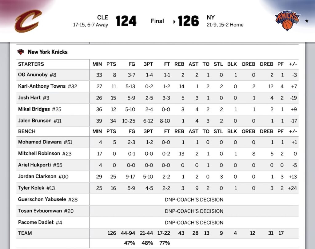 — NEW YORK KNICKS (@nyknicks) December 26, 2025