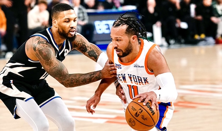 ホームMSGでバックスと対戦!今日は前回欠場してたミドルトンはベンチから出るんだって