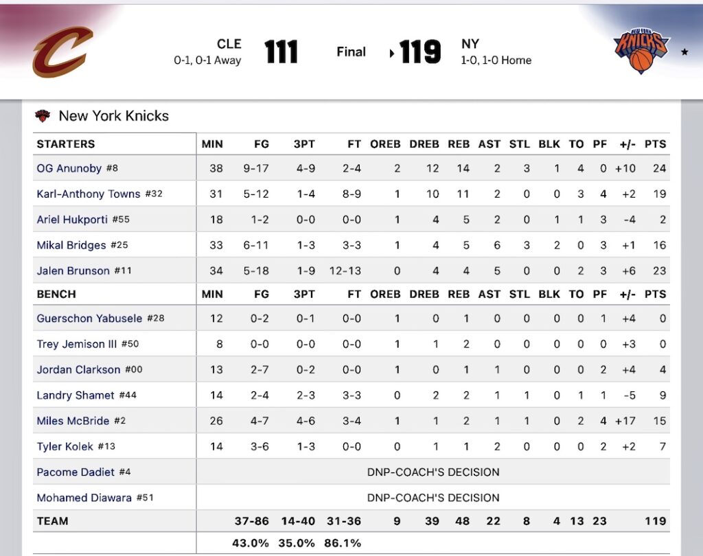 — NEW YORK KNICKS (@nyknicks) October 22, 2025