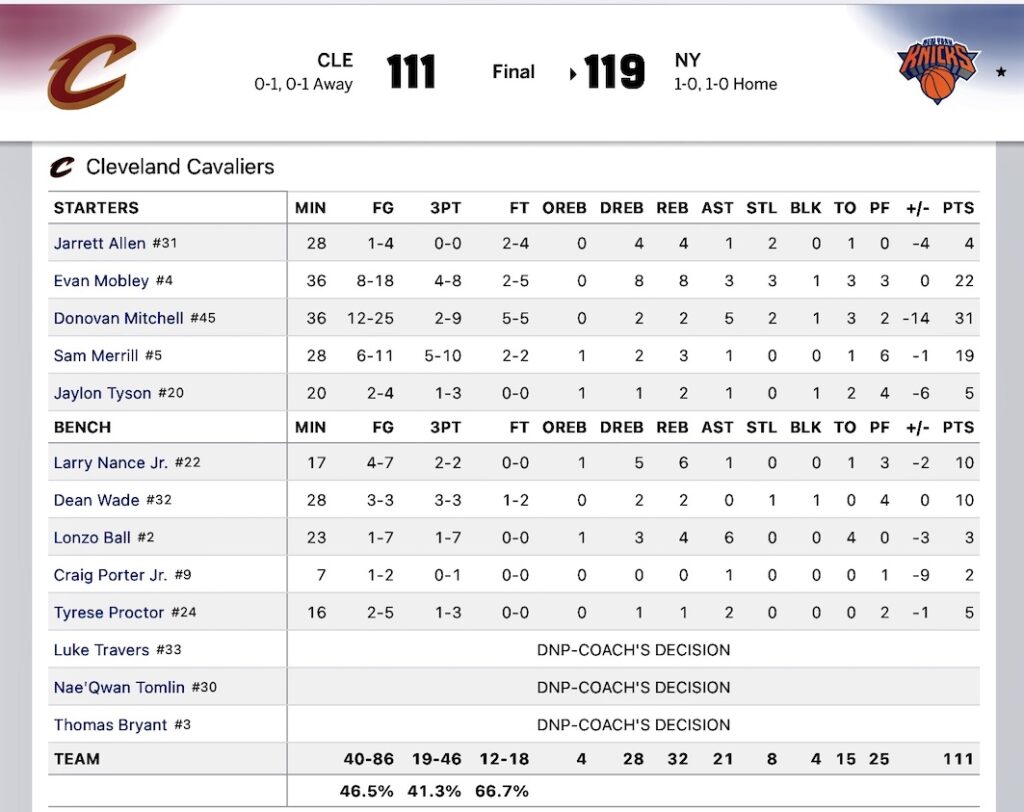 — Cleveland Cavaliers (@cavs) October 22, 2025