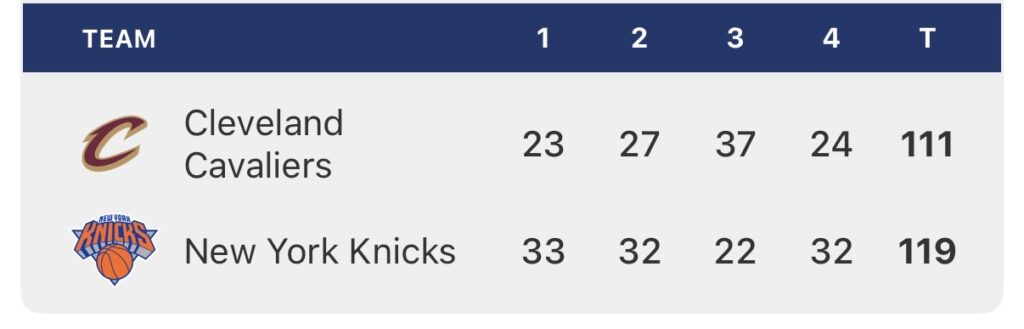 2Qで15点リードしたと思ったら途中1点差まで追い上げられ。。そこから又17点リード作って前半15点リードで終了!は良かったけど、後半はミッチェルミッチェル!ミッチェルが3Qで21得点して一時逆転までされちゃった。でも今日のニックスここで崩れず、4Qは4人が得点する14−2ランでスタート。またまたリードを作る!そのままリードを保ち最終は111−119でニックスWIN!!!