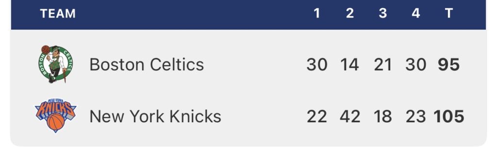 後半は「セルティックスのディフェンスが改善。前半3だったニックスのターンオーバーが増えた(後半12 涙)」「(BOSの)ルーキー、ゴンザレスのディフェンスが素晴らしい」とスタンが言ってるけど、皆んなのプレーがますますフィジカル。相手がじわじわと迫ってきて4Qニックスは10点リードをいったりきたり。でも!ディフェンスとタイムリーなシュートで乗り切り、最終は95−105とセルティックスを90点台に抑えてニックスWIN!!! ウェイウェイ〜