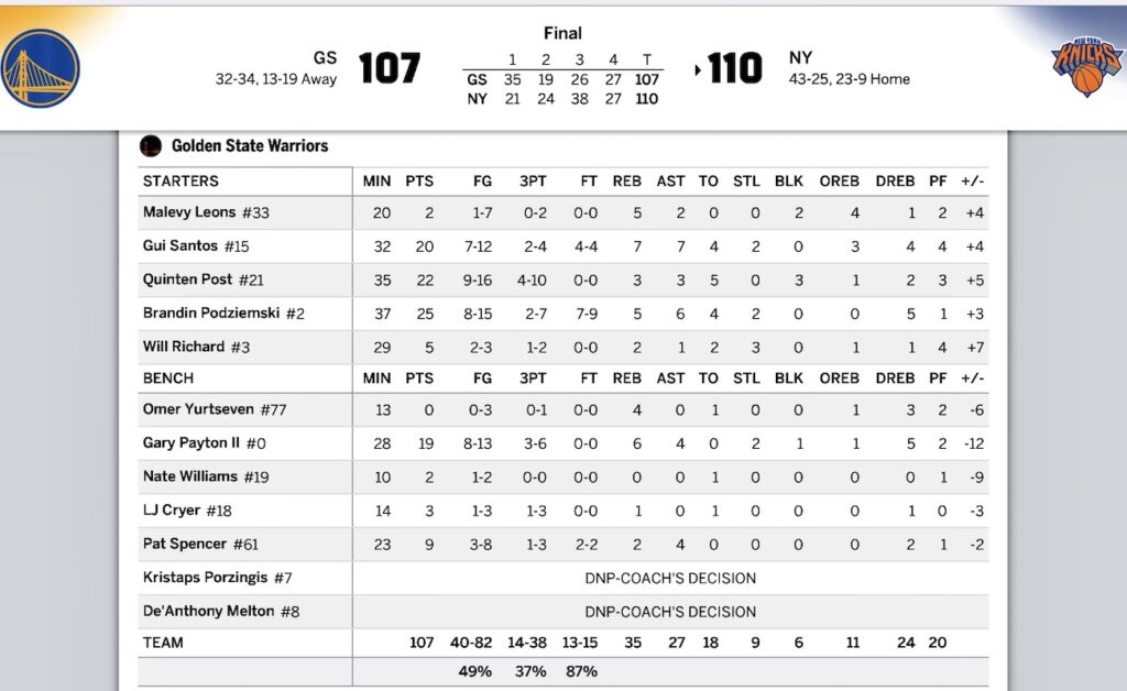 メディアでは「Gリーグ版ウォリアーズ」なんて表現もあったけど↓GSのお休みリストはこんなかんじで確かに超人手不足