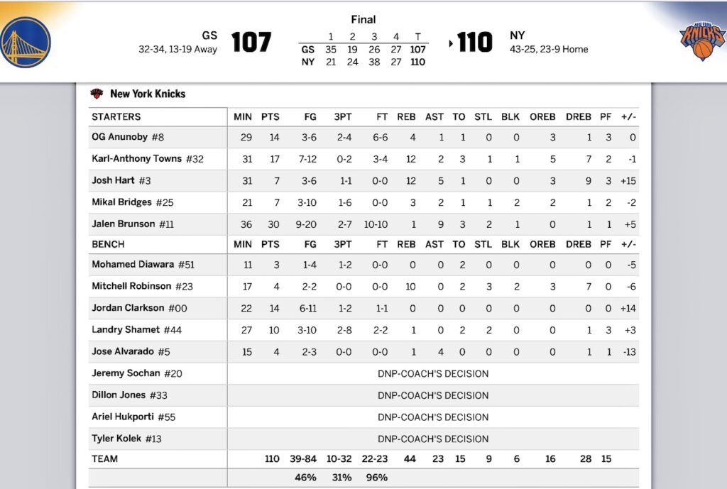 — NEW YORK KNICKS (@nyknicks) March 16, 2026