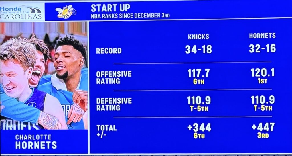 しかし!それ以降のホーネッツ→オフェンスレートはリーグ1位。ディフェンスレートはニックスと同じ5位。ディフェンスの改善で強くなってると話題に