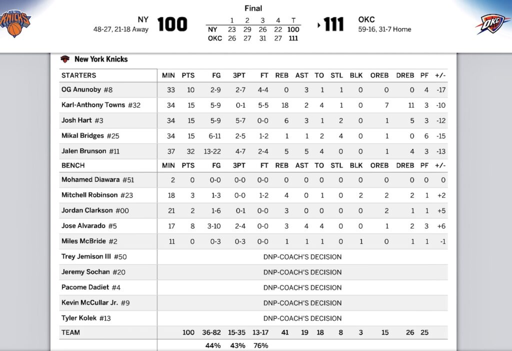 [NBA] ニックス 2025-26第75戦対サンダー〜おかえりデュース!やっと復帰