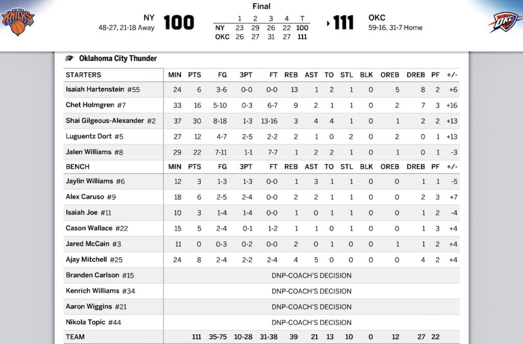 ニックス対サンダー NBA | New York Knicks