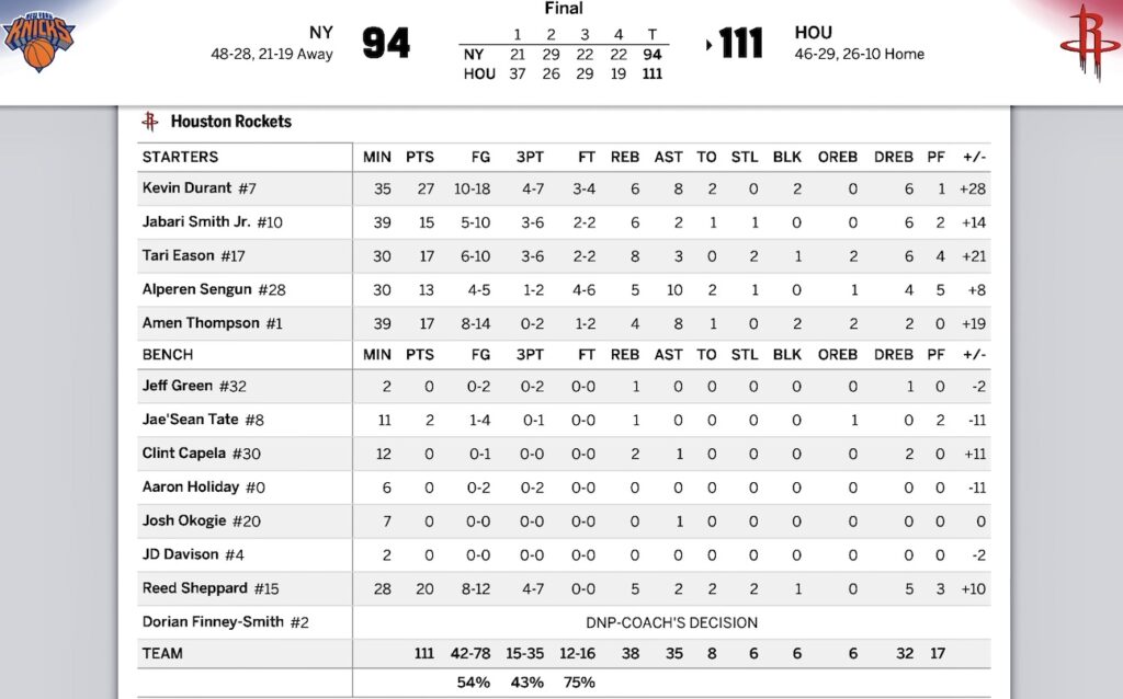 ↓前回の試合内容を考えれば「今回KDとロケッツがリベンジモードで挑んでくるのは明らか。ニックスは準備を」byスティーブ・ノバック