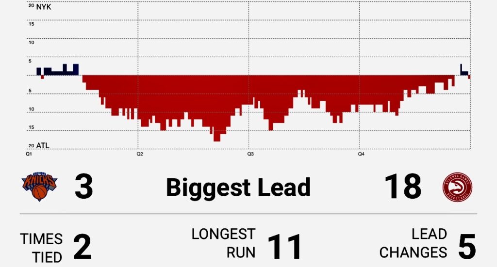 2Q「オフェンス停滞。アイソ多すぎ、ATLのフィジカルとエナジー」byモニカ(MSGラジオ聴いてます)最大18点ビハインド。デュースのスリー、クラークソンのツー!12−2ランで50−58ニックス8点ビハインドで終了